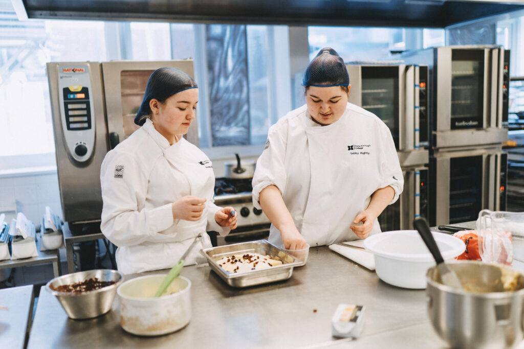 The course is structured to guide the learners with their own needs to develop their own working to a more independent way: • Dexterity • Lateral Thinking • Planning of Tasks • Knife Skills • Basic cookery techniques • Teamwork and working with others • Introduction to working in Industrial kitchens plus development of maths and English alongside current and relevant legislation During the transition with the Entry Level 3 Award we will be providing learners with an introduction to industry, where they will learn a range of hospitality skills across the realistic working kitchens. Alongside this they will be gaining theory knowledge which will support progression to further learning and ultimately to work in hospitality and catering or other related subjects.