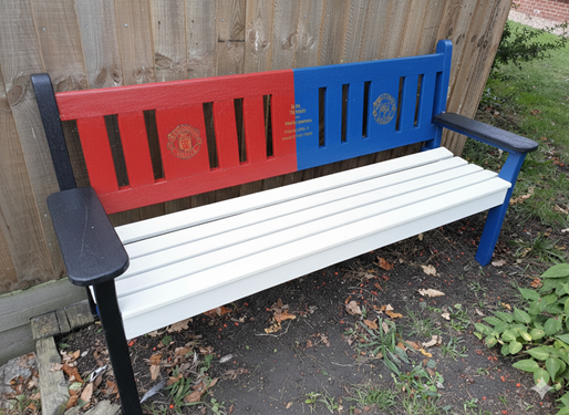 Their first restoration project holds particular meaning for tutor Wayne Palmer, as the bench they began with is in memory of his former foster son, Aaron, who was a student at Stamford and passed away in 2017. Aaron’s bench features the crests of his two favourite football clubs, Manchester United and Peterborough United and an engraved inscription.